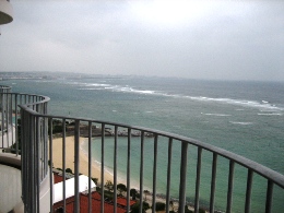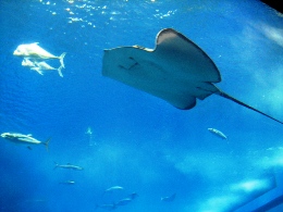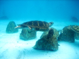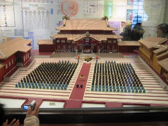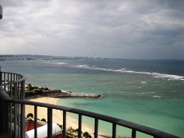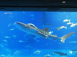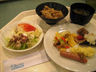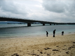 そんな朝の海です。 やっぱり、ちょっとどんより~~な感じかな? でも、お天気悪くても海がきれいなのってすごいね。パラオもそうだったけど。 今朝はゴーヤのメニューが並んでなくって、ちょっと残念だったな~ コーヒーは、お部屋で飲んだほうがおいしかったりして。(←ママに淹れてもらって(^^;) 今日は、この旅行の中での、私のメインイベント「美ら海水族館」に行くのでーす! ジンベエ鮫に会うのだ♪ ホテルからは車で1時間弱。すいすいとすぐに着きました! お天気良くないし、平日なのに、人がいっぱい! やっぱり人気なんだね。 入るとすぐに、触れるコーナーがあって、そこから小さな水槽でいろいろな魚を見させられます。 ニモもたくさんいた~~(写真右) そして、満を持してジンベエ鮫とご対面! 映画のスクリーンより大きいってば!! 小さな水槽はここのための布石なのね。 魚って、どうして飽きないんだろう。何時間でもいたくなる。 ジンベエ鮫が来るたびに、おおおぉ~~って、どよめきが起こってました。 すごく大きかった!! ジンベエ鮫の背中に、ずーっとくっついている魚が1匹。 赤ちゃんでもないし、なんだろう。 大きな魚の背中についたプランクトンとかを食べるやつがいるって聞いたことあるけど、それかな? 大きな水槽には、もちろんマンタも泳いでいました~(≧∇≦) マンタを上からも下からも見られて、満足満足(^-^*) あまりにも長時間水槽の前にいたので、最後は引っ張られるようにして移動。 名残惜しくて、後ろ髪惹かれるな~o(TヘTo) 外に出ると、小雨がぱらつく中でイルカショー開始! そんなに大きな技はなかったけど、楽しめました。頭いいよね。 「こういう顔のおじいさんっているよね」っていいながら見た、海亀。 様子を伺ってるような感じで、旋回していた。 いやあ、ほんと、楽しい水族館でした。ジンベイ鮫の餌付けが見られなかったのが残念だったけど。 ママいわく、 「食べられそうなのってカサゴしかいなかったわね~」 確かに、おいしそうなのいなかったかも~ 次の目的地に移動する途中で、お昼ご飯にしました! 「くろちゃん」という、食堂。ものすごい田舎道にポツンとあって、ドキドキだったのだけど、 頼んだものはとってもおいしかったです。サインもいっぱいあった。 私は、野菜そばを注文。これで、650円くらい。大盛りです。 右のは、沖縄のチヂミみたいなものだそうで、こーれーぐーすにつけて食べるとおいしいよ。 目指したのは、水族館から40分くらいのところにある「古宇利島」というところです。 島まで繋がってる橋を車で走ると、両側に海がバーン! と見えるところで、夏は真っ青なんだろうなあ~ ご覧の通りにどんよりだったけど、でもエメラルドグリーンの美しさ、少しは見えるかな? お天気良かったら、最高だったと思うのだけど、白い砂&青い海はとってもきれいでした! ちょっと明るくなったときに、誰もいない砂浜&橋を激写! 橋の長さ、わかるかな~? 波打ち際、近くで撮ってみました。やっぱりキレイ! そうそう、お約束もやっておきましたよ~。日付書くやつ。 今回は、ママと一緒にパチリと。 冬の海もなかなかいいね(^-^*) 帰り道で、人気があるという道の駅「許田」によりました。 南国フルーツとか沖縄の野菜がたっぷり売っていた♪ スターフルーツとかドラゴンフルーツとか、たんかんとかね。友人にもたっぷりお土産を郵送~ ホテルに着いたら、結構な雨が……。 取り急ぎ、温泉につかって、ホテルのすぐ裏にあるレストランへ行きました。 個室だったから、ゆっくりできたかな。 チャンプルー系をいっぱい頼む私。 タロイモのてんぷらとか~、ラフテーとか~、三枚肉のみそ焼きとか~ パパイヤチャンプルーと、最後にカリフォルニアロールまで食べて、 またまたお腹いっぱいで帰ったのでした♪ 今日も満喫した一日だった~~ おいしいものを食べた次の日って、目覚めもいいのね♪ とかいいながら、ホテルのバイキングで朝ごはんです。 まあ、普通な感じですかね~~。特筆するようなものは特別なく。 レストランが大混雑で、別の大広間みたいなところで食べたのが、ちょっといただけなかったけれど。 両親の部屋は、ワンランクアップしているので、180度オーシャンビュー! 1月5日の朝の海です。どうでしょ? 今日の予報は曇りで降水確率40%と微妙な感じです。 旅行ではほとんど雨が降ったことがない私、降らないことだけを念じるのみです。 今回の旅行は、海に入れないので、本島を観光し尽くす!! というのが目的です。 まずは「首里城」へ行きました。 大きさに驚くばかりだったけど、あの戦争ですべて消失してしまって、すべては復元したものらしい。 ほんと、戦争なんてろくなことない。朝から戦闘機もバンバン飛んでるし(#`Д´)凸 そんな沖縄には国もお金を出すみたいで、首里城は塗りなおし工事の真っ最中でした。 一応、外観損ねないように最大限の配慮で、足場も朱色にしているみたいです。 琉球王国の王様を迎え