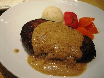スタッフ君が予定していたお店が、なんと臨時休業!! ということで、 てくてく歩いて洋食屋さんに入りました。 ええと、名前失念ですみません(汗 2種類のマスタードソースのハンバーグランチにしました。 丁寧な仕事だな~って思ったランチでしたが、タバコプンプンだったのが、 ちょっと残念だったわぁ~