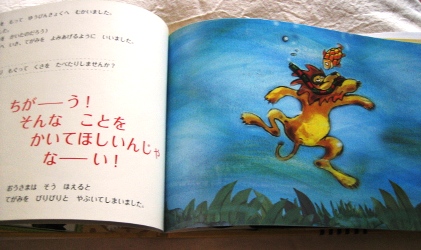 『じがかけなかったライオンのおうさま』 作・絵:マルティン・バルトシャイト 訳:加納教孝 発売元:フレーベル館 ドイツの絵本です ライオンの王様がいて、散歩していると、とあるメスライオンに一目ぼれ!! そして、ラブレターで気持ちを伝えることにしたのだけど、 字が書けない~~。で、森の仲間たちに代筆を頼みに出かけます。 でも、誰に頼んでも満足できなくて、途方にくれてると、素敵な出会いが~~ 写真はお魚に頼みにいく場面。絵がかわいいんです! そして、一目ぼれしたメスライオンっていうのが、またセクシーなんです。 さらっと動物間の弱肉強食な部分もかかれてたりして、お気に入りになりました! PR