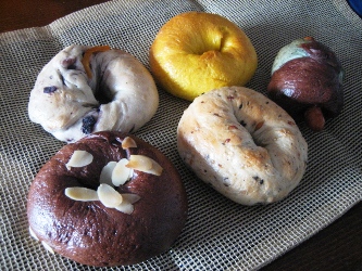友人がおいしいベーグルを持ってきてくれました!! わーいわーい♪ ベーグル好きなので、とってもうれしいです☆ 5種類も~~♪ 「Vivant」というところのベーグルでございます。 外側のモッチリ加減が、これまでに体感したことのない感じ! おいしい~~ 中に入っているものも、チョコ、パンプキン、などに加えて、ソーセージ! HP見ると、たくさん種類があって、魅力的なラインナップなので、 次はたっくさん購入してきてしまおうと思っております♪
