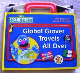 『Global Grover Travels All Over』 出版元:Reader's Digest 発売:2006年 みんな知ってるセサミストリートの絵本です。 キャラたちが世界を旅行するシリーズで、 この本ではジャマイカ、メキシコ、モンゴル、南アフリカに出かけます。 途中、こんな風に写真入で各国の様子を紹介。 その国の文化、子供と絡んでいるのが多いです(←あたりまえか) 終盤、クッキーモンスターのかばんには、各地でGETしてきた民芸品が! これらを切り離して、最後のページにあるお部屋に自分で飾りつけします。 クッキーモンスターが全部同じ顔で不気味さ倍増なのと、 ほかの絵はとってもかわいいっていうギャップが、かなりツボ。 セサミのキャラたちは、やっぱり不気味じゃないとね~♪