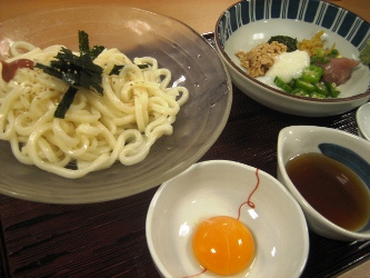 メシ押しにも程がある~~~!!! とわめいていたら、 「麺通団」に連れて行ってくれました♪ いい人!(←エサに釣られる私) 実は、初めて入ったんです!! うわさには聞いていましたが…… 肉味噌ぶっかけにしました。そして、ゴーヤの天ぷらを♪ 夏ですから♪ ネギとおろしをたっぷりかけて、いただきまーす! ツルッとバクッといただきました。おいしかった! ご馳走様でした~(←突然礼儀正しく)