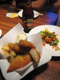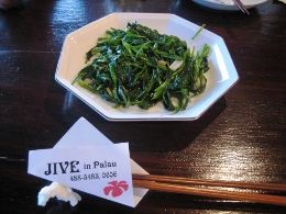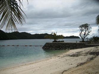 私の疲れが取れてないし、ひょっとして最悪の、もしや?! まだ雨は降ってないけど、この通りのどんよりさ加減。 とりあえず、ホテルのプライベートビーチに出てみました。 すぐそこまで魚がきてて、ビックリ!! そして、お約束を一応やっておきました。今日は敗戦記念日なんだね。合掌です。 海、とってもきれいだけど、そろそろ雨来そうかな~? 晴れ女パワーをフルにするためにも、予定変更でいこう。 ま、今日はホテルのビーチで楽しむ予定だったので、予定も何もないんですけどね。 というわけで、タクシーを呼んで町へ出て、腹ごしらえを。 パラオには名物とかほとんどなくって、下調べでも食べ物には期待できないってことだったので、 「ハンバーガーのおいしいところがあるよ」ってホテルの人に教えてもらい。 ガイドブックにも載ってたお店へ~~ 行く途中でスコールドーン!! タクシーの中で食べました。 ハンバーガーは、おっきくて、ウワサ通りおいしかったです! ハンバーガーを食べてる間にも、雨脚が強まってきたので、 近くにある水族館に行きました! パラオはサンゴの島としても有名で、そのサンゴを守ろうという活動がかなり行われています。 昨今、温暖化もあってなのか、サンゴの死ぬ量が多いみたいで。 サンゴを中心に展示してある水族館なのですが、すごい色のカニがいました!(写真右) カニって顔が変だよね。 お天気は悪そうなので、そのままお土産などを買いに行くことに。 途中でタクシーの運転手さんが「昔は日本の企業は三井が強かったけど、今は西松だね」 って言ってて、タクシーを降りた後、プラプラしてたら西松建設を発見。 でも、撤退してるっぽかったです。 あとは、セブン-イレブンの似非みたいのがあったり。 昔、日本が統治してた頃の名残はかなりあって、現地の人、日本人にはみんな優しかったな~。 町の中心から少し離れたところにホテルがあったのだけど、20分くらいなので歩くことに。 そしたら、車社会のパラオ、歩いている人はほとんどいなかった!! 私も夕方になって元気になってきて、雨もあがったから、島と島をつなぐ写真を撮ってみました。 車はすごいスピードで走るのよね。夜は海に落ちる人も多いとか……。 海と空、キレイです。 ホテルに帰るまでの間に、現地で“居酒屋”って呼ばれてるお店があるので、 立寄りました~。今日はここでご飯。 日本人のオーナーさんで、日本向けにいろいろメニューを考えているっぽいです。 店名は「居酒屋モグモグ」。 写真左はシャコガイっていう、日本ではいただけない貝のガーリック炒めです。おいしい! 右はマングローブ貝のイタリアン風。風ってところが居酒屋っぽい(笑) 柔らかくておいしかった! あとは、タロイモっていう、沖縄にもあるけど、おいもがパラオでは主流で、 そのコロッケと本日のお魚のムニエルをいただきました。 感想は~。私でも作れる?! でも、おいしかったので、ま、いいか。 それから、こっちには地ビールがあるんです!「レッドルースター」っていいます。 黒ビールはお店じゃないと飲めないよ~って聞いたので、黒を飲んでみた!! その次にはハーフ&ハーフを飲んでみた!(写真) 南国のビールは、やっぱりサラッと薄くて飲みやすいです。 このグラスが気に入ったので、どこかで購入する予定☆ このお店、日本の有名人の写真がたくさん飾ってあったのだけど、 帰りにはあの猪木の写真を発見!!!!!! 猪木はかなりのパラオ好きで、なんと「INOKI ILAND」っていう島まで持ってるんです。 残念ながら一般人は入れないんですけどね……。 でもこの海のキレイさには魅せられちゃうよな~。わかります!