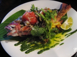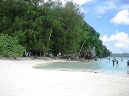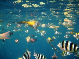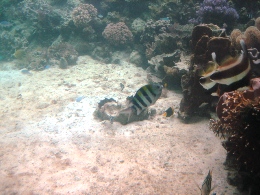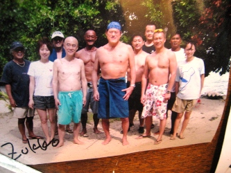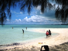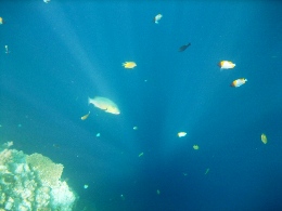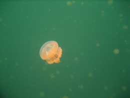 昨日いちにち、ゆーったりと過ごして、充電したので、 オプショナルツアーに申し込んでいた今日、晴れ女パワーを見事に発揮!!!!! どう? この海の青さ。碧さ。蒼さ。藍さ! こんな(↑)表現はいけないのかもだけど、そんないろんなあおさを見せてくれるパラオの海です。 高速ボートで本日の観光1箇所目に向けてスタート~! ボートで30分くらい進むと、なんだか海の色が変わって、波がなくなった。 そして、マングローブの森と森の間を抜けて…… 写真右の地点に到着。 ここは、石灰岩とサンゴの死骸(?!)が一緒になって、そこに海のミネラルがたっぷり含まれて、 泥パックになった地点です。海の底にはなめらか~な泥がたっぷりと。 それをすくってきて、全身に塗りたくる! ま、そんな絵面はもちろん見せられませんが。髪にもいいものだそうで、 私はもちろん、水着の上から全身に塗りたくりましたよ~~。 少し固まってきたら、海にドッボーンと入って洗い流せばOK。 顔の日焼け止めが落ちてしまったことだけが悔やまれます…… さて、次に向かったのが、クラゲと泳げる湖です。 クラゲというと、刺される! しびれる! 危険! みたいなイメージなのですが、 ここには、無毒のクラゲがたっくさん住んでます。人間が入っても気にしないらしい…… それどころか、寄り添ってくるらしい…… 自然保護区域なので、入場許可書が必要です。それがこれ。USドルで35ドル。って、高くね?! 10日間有効なんだけど、1回しか使わないの、もったいない気が~ でも払っちゃうのが旅行マジックなのかも。 そして、湖について、デッキの上から見るだけで、このクラゲが見えます。 結構、大きいじゃないか。 ガイドさんが「キャッチボールしたり、蹴っ飛ばしたりしないでくださいね~」 キャッチボール……そんなことした不届きなやつがいたのか!! 恐る恐る、フィンなどをつけて入ります。 進んでいくと…… こんなにいるんですけど!!!!! なんでも、寿命は1年で、その間にメスはものすごい数の子供を産むらしい。 子供は小さくてかわいらしいんだけど、さすがに大きなのがたくさん近寄ってくると、 ちょっとビビルね。野球ボールくらいの大きさがあります。 今回、水中でカメラが使えるケースを持っていったので、水中写真がたくさん撮れました~♪ 現地のガイドさんが、素潜りして水中からとってくれました。クラゲと一緒に~ いかに水がきれいかがわかります。 途中、魚もいたんだけど、クラゲとの力関係はどうなんだろう?? 日本の影響はこんなところにも根強く残っています。 ランチは「はーい、みなさん、ベントーですよ~」と。パラオ人、みんなお弁当好きみたいです! 今日のは、ちょっと韓国風だったかな。 お弁当を食べるために向かったのが、ロングビーチというところです。 「ここ、カラオケのロケ地としてよく使われるんですよ~」 っていうことで「ロケ地パラオ」って書いて、撮影してきました。見えるかな~? ロングビーチというのは、干潮時にだけ、島と島を結ぶ長い道が現われるんです。 このときは残念ながら、干潮時ではなかったんだけど、どこまで行っても遠浅の海。 対岸の島まで行くのに、腿までは浸かるけど、歩いて着いちゃうんじゃないかな? という感じです。 なんたって、この美しさですよ。何時間いても飽きないな~~ といいつつ、私は浜辺の日陰にずっといたんですけどね。 お腹もいっぱいになったところで、シュノーケリングポイントに向かいます! 着いたところは、サンゴとサンゴに挟まれているドロップポイントってところ。 まずはサンゴの付近にいる小さな熱帯魚を見て。(写真左、青い魚、見えるかな?) そして、ちょっと進んでいくと、急に深いブルーのところに!!(右) ここは、800mくらいあるところらしくて、8mくらい下がるとナポレオンフィッシュが見えるらしい。 えーっと、ライフジャケットが手放せない私は、無理っす、8mとか。 でも、グランブルーの青さはしっかりと堪能しました。カメラの防水パックさまさまだな~♪ 水際にもこんなに熱帯魚がいるんです。このあと、ちょっとガイドさんが餌付けしたら、 ものすごいことになりました。魚って強欲なのね。 明日、ツアーを頼んでいる会社が、レストランも併設していて、送迎もしてくれるというので、 今日の夜ご飯はここ「JIVE」でとることにしました! ツアー会社は「INPAC」というのだけど、なかなかいい会社でした。まあ、日本人が経営してるしね。 えーっと、ここもメニューは日本人向けのアジア料理が多かったかな。 生春巻きに、フィッシュフライに、右はなまこのスープだったっけ? なんか珍味のスープで……。 一口だけ飲みました。まずくはないけど、魚介独特の香りはありますね。 「本日のお魚」メニューは、調理方法を選べます。2つ選べたので、 イタリア風とアジア風にしてもらいました。刺身とかはちょっと無理だったようで…… 獲れたてなら刺身でいってみたかったけどな~ でも、この鯛はおいしかっ