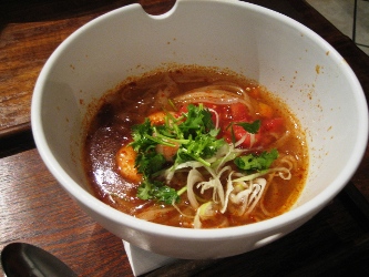今日は、ラストスパートでがんばりました~ お昼はバリ料理のお店へ。 バリ料理と言っても、いろいろな国のアジアンフードが満載ですが。 今日はフォーがトムヤムで冷麺仕立てだったので、注文。 あんまり辛くなかったなあ。 そして、麺類つづいてるよね??