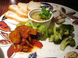 この3ヶ月くらい、なかなかメンバーとの都合が付かず、少人数開催だったので、 あえてグルメ食事会にはせずにいたのですが、今日はいっぱい集まりました! お店は相変わらず私が独断と偏見で選んでいます。 今日は「角屋」にしてみました。気になっていたのです。(公式なかったのでぐるなびで) このお店の気になっていたところは、アンティパストがすべて500円ということ。 メニューによっては量がまちまちなのはしょうがないですが、みんなで食べれば、 いろいろ頼めていいかなぁと。ただの食いしん坊ともいいますが。 さらに、4点盛りは1600円とお得なので、迷わず注文です(右) タコのマリネがおいしかった!! 白ワインとともに。 左はバーニャカウダです。アンチョビがいい具合に入ってます。 ええと、ワインがかなり空いてきたころには、おのおの好きなものを好きなように頼み、 そういえば、ピザも食べたなあ。確か、3種類くらい。 パスタも食べたなあ、2種類くらい? デザートに移行する人もいれば、ミックスナッツとか乾き物に手を出す人もいて。 今年も楽しく自由に、おいしいものたくさんいただこうね~♪