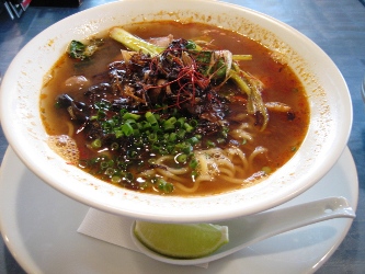 ランチは、近くにあったお店「アジアンガーデン・ライオン」でタイ料理をいただくことに~。 銀座ライオン系列のエスニックのお店ですね。 魅惑的なメニューがいっぱいあったのだけど、トムヤムクンを飲みたくて、 トムヤム麺を注文。麺はラーメンが入ってました。 レモングラスとかハーブ系がたっぷり入ってて、それはよかったのだけど、 フライドオニオンが焦げ過ぎだってば!! うーん、もう少し早めに引き上げてもらいたかった感じです。 全体的には、まあよかったのではないかな、ランチだしね。