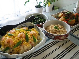 「定期健診」という名のランチ&お茶の会。早くも3年目に突入でーす! お子様は、6月で3歳。早いなあ。私たちはなにも変わってないのに、成長の早さに驚かされます。 小声で「カオちゃん」とかささやいたりして、女心を鷲づかみ! 今から、将来変な女にだまされないかとみんなで心配しています。気分はすっかり第二の母。 だって、あまりにもかわいいんだもん!! 子供って、かわいがられる要素をいっぱい持って生まれてくるんですね~。 12月にメンバーがお誕生日だったのだけど集まれなかったので、 やり直しお誕生会です。 今日も、ママの素晴らしいお料理を堪能しました~! もう、なんておいしいのでしょう。家庭の手作り料理にかなうものナシ! モリモリと山ほどいただいてしまいました。 今日もご馳走さま! 本当においしかったよ~♪