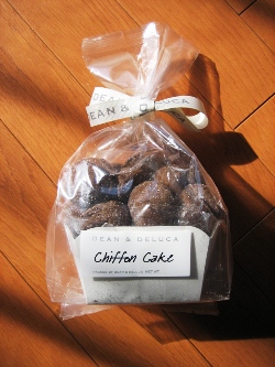 「DEAN&DELUCA」があったので、入りました。 パンとか、ケーキとか、ジャムとか、目移りしちゃいましたが、 シフォンケーキがおいしそうだったのでGET! バレンタインも近いし、チョコレートシフォンにしました。 ふっかふかの食感で、柔らかくて、一口サイズ。 甘さもちょうどよくて、お子様でも安心して食べられるんじゃないかな。 おいしかったです!