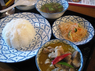 ひとりでゆっくりとランチしてきました。 フラフラと歩いて、うーん、いいお店ないなあ。気が向くとこないなあって、 わがままに歩いていると、好みのスパイスの香りと妖しげなメロディー。 で、グリーンカレーをいただいてきました! 長らく食べてなかったグリーンカレー。 タイで買ってきたペーストもとっくになくなっちゃってたし、 タイ料理好きの親友ともなかなか外食の機会がなくて、ほんと、久々です。 バクバクと脇目も振らずに完食! タイに行きたくなってきました……。