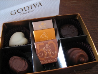 ということで「ゴディバ」を購入しました。 円高の影響なんてどこ吹く風で、チョコレートはやっぱり高いのですが、 正規値段でもゴディバは良心的なんじゃないかなと思います。 何年か前から、デザインを一新したゴディバですが、これはスタンダードなセットなのではないかな。 欲をいえば、カカオの%が楽しめるチョコの種類がもう少しほしかったな~。 と、セールで買ったのにブツブツ。 前食べたときはイマイチと思ったのに、 今回はホワイトチョコレートが想像以上においしかったのが収穫でした。 がんばっているね、ゴディバ。(←あくまで偉そう) 私の周りの男性陣、旦那とかパパとか、今年は結構チョコをもらったようです。