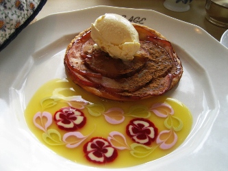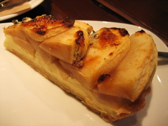 とりあえず味見したほうがいいかなと思って、大量にある我が家のリンゴをおすそ分けしました。 そしたら、スタッフさんが、ゴルゴンゾーラと一緒にタルトにしてくれたので、 ご相伴に預かりに行ってきました~。いつもありがとうデス! リンゴを渡したときに、どんなのがいいかって聞かれてて、 アップルパイ好きな私は、理想のアップルパイの話を延々と語った(←迷惑)のですが、 その要望をタルトで見事に再現してくれました。 ゴルゴンゾーラとリンゴの組み合わせって、すごい合うんですよね~。 ワインのおつまみとして、最高です。 もちろん、このタルトも絶品でした!!
