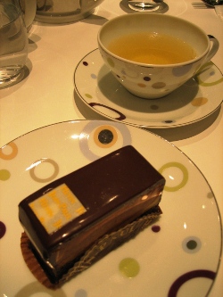 仕事帰りにケーキでも食べましょう~ってことになり、 「ジャン=ポール・エヴァン」へ行ってきました! ここのカフェに入るのも久しぶりだな~♪ 並ばずに入れたのだけど、時間が遅かったせいか、売り切れのケーキが山盛り(TOT) お誕生日でケーキだから、ショコラショーじゃ味気ないし、 マカロンって気分でもないし、とりあえず、残っているものからチョイスしました。 でもでも、さすがにおいしいよね~。ムースとババロアとガトーが層になっています。 「ベルガモ」という種類。 お茶にはオペラという、フルーツフレーバーのグリーンティーを合わせて。 カメラマンさんははじめて入ったということで、喜んでいただけてよかったです♪