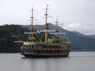 「山のホテル」の「サロン・ド・テ・ロザージュ」です。 サロンドテというからには、それなりのサービスなんでしょう。 年末からずっとアップルパイが食べたかったので、オーダーしました。 目の前で作ってくれます。ソースの説明をしながら、飾り付けていって、 その間にもシナモンとリンゴのいい香り~♪ 早く食べたい!! お味のほうは、私の好きなタイプのアップルパイでした。満足満足☆ 今HP見てみたら、この「りんごパイ」は人気メニューだそうで。そうなんだ~。おいしいしね! 窓の向こうには遊覧船が見えておりました。すぐ近くには船着場もあった。 箱根らしい風景ですなぁ。