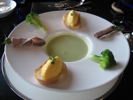 ススキが名高い仙石原なんですが、季節は真冬……。 ま、まあ、新緑でも黄金色でもないススキも、なかなか情緒があるかな?? そんな自然たっぷりの静かな山の中にあるオーベルジュ「フォンテーヌブロー仙石亭」へ行ってきました。 お部屋出しの懐石フレンチもあったのだけど、 せっかくオーベルジュなので、ダイニングでフレンチコースをいただくことに。 先付け:「湯葉と豆乳のミルフィーユ仕立てゆり根のサフラン風味添え」 前菜:「トリュフ団子フォアグラとワインのジュレを包んで」 この前菜が、絶品でした!! トリュフのいい香りに赤ワインのソースがマッチ。 パンもおかわりしてソースをきれいに食べてしまいました。 スープ:「コンソメスープ 海燕の巣添え」 お口直し:「さつまいものお口直しカルバドス風味」 スープ、とってもキレイなコンソメでした。海燕の巣がまたいいアクセントに。 口直しは魚のあとだったのですが、写真的に並びを変えました。 芋好きなので、たまらない味わいだったな~♪ 魚料理:「舌平目のポーピエット造り旬野菜の恵」 肉料理:「地域限定 上州牛サーロインのロースト ソースベリグー」 お酒はロゼワインをグラスで、そのあと赤ワインをボトルで頼んだのですが、 お魚も赤ワインに合ってました。箱根の野菜をたっぷり使っているところがすばらしい。 上州サーロインのやわらかさと、もたれない脂(←肉の脂が苦手)に感動して完食!! デザート:「3種のケーキと3種類の木の果実」 最後に、ドスンとデザートが登場。お腹いっぱいなのに、まだ残っていた赤ワインとともに。 濃厚なケーキばかりだったけど、するっと食べてしまいました。 3種の木の実は、フランボワーズ、ブルーベリー、あとひとつはなんだったっけ?? 夜、あんなにお腹いっぱいだったというのに、朝もしっかりいただきました。 生ハムと箱根野菜のサラダ。フレンチドレッシングがすごーくおいしかった!! 右はグリーンピースのポタージュで、肉巻きのアスパラやブロッコリーと一緒に緑尽くし。 こちらもぺろりとたいらげる。 デザートヨーグルトも出てきました。毎日ヨーグルトを食べている私、うれしかった! フルーツが違うと、プレーンヨーグルトもこんなにおいしくなるのねえ。 ということで、コーヒーもおいしく、大満足なモーニングでした。 お部屋にはさり気なく炭や花があったり、ロビーには調度品がセンスよく飾ってあったり、 なかなかいいオーベルジュだったと思います。 この日はお正月休みも終わっていて、宿泊客は2組だけ。温泉も貸切でした。 檜のお風呂で、箱根では珍しい乳白色。ゆっくりあったまりました☆