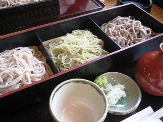 いろいろと秋を妄想しながら取材しています。 今日は、街中でおそば屋さんの「新そば始めました」の張り紙をたくさん見て、 自分も食べている気になる妄想を……。 アップしてなかった、9月のはじめにどこかで食べた3色蕎麦です。 田舎そばは太くてコシがあったんだけど、 最後の最後まで奥歯の矯正に挟まってたな~。