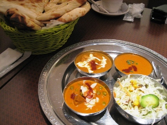 前にも行った「グランドダージリン」です。新橋が本店だったかな? 朝の集合時間が早くて、相変わらず電車は遅れ、お昼にはスタッフ全員ヘトヘトに。 なので、スパイシーに元気出しましょ~ということで、 モリモリと3種盛りにしてしまいました。 焼きたての大きいナンが甘くておいしいです。 この日は、チキン、キーマ、本日のカレー(マッシュルームとグリーンピース)の3つで。 いろいろ種類あって全部おいしそうなのに、いつもチキンとキーマは頼んじゃう、 そして、周りもみんなチキンorキーマは必ず頼んでいる。 このお店のマジックに見事にはまっている私です。