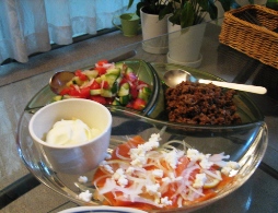 今回も、忙しいYママの手作り料理をご馳走に! ありがとう~♪ まずはホワイトシチュー! わーい! この冬(秋?)初です。 すごく柔らかくて香ばしいチキン入りで、とってもおいしかった! 野菜の硬さも私好みでございます。 そして、メインはトルティーヤ!! メキシカン、大好きなのでモリモリといただいてしまいました! ひき肉の味付けといい、サルサの野菜といい、ほんと、お料理上手です! サワークリームがまたたまらないね~☆ お子様は、すくすくすくすくととっても健やかに成長しています。 もうすぐ名前で呼んでくれそうな感じです! あとは「る」がいえるようになれば、完璧だね!! きっと、来月にはカオル~って呼ばれるんだろうなあ。楽しみでっす! 今日はありがとうね~! また集まろうね!!