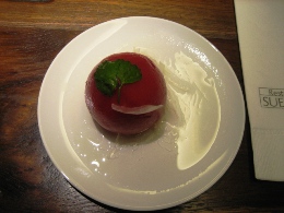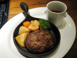 最近、ルミネの横のビルに「スエヒロ」がオープンしたというので、ランチに行ってきました。 ハンバーグランチを頼んだのだけど、トマトを丸ごとひとつ使ったサイドディッシュつき。 甘くてみずみずしいトマトだった。 肝心のハンバーグですが、おいしいのだけど、ちょっとソースが物足りないかな。 普通のスエヒロよりもこじゃれた感じなので、フライパンのまま出てきたのだけど、 ナイフ&フォークがとっても切りにくかった……。 普通のお皿にするか、もう少し大きいフライパンにするか。 あ、ジャガイモはおいしかったです!