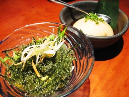 予定通り、沖縄料理屋さんです。パンマイスターちゃんが欠席だったのが、残念。 恵比寿の「首里天」で集まりました。 私、沖縄いったことないんだけど、おいしいものがいっぱいあるので、大好きな郷土料理の一つです。 写真はジーマーミー豆腐と海ぶどう。ほかにもたっぷり頼んで、 シークワーサーも飲んで、楽しい夜でした☆