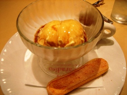 このあいだ、世帯主とお茶したときにいただきました。 イタリアンのレストラン「ローカリタ・イル・パラディーゾ」が カフェタイムに提供しているものだったので、エスプレッソが濃くておいしかった~♪ バニラアイスも濃厚で、私の好きなねっとりタイプ。おいし~い! 「旨そうだから頂戴」というからあげたのに、 世帯主は「オレ、アイスクリームやだ」とか抜かしやがった!!(←言葉汚い) もう絶対あげないから!!!