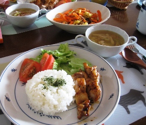 忙しいmisaponちゃんが欠席だったのが残念だったけど、また来月会おうね! ランチはワンプレートにしてみました! 暑くなってきたから、鶏のエスニック焼きです。 ピーナッツクリームがポイントのタレで。バリに行きたくなったなあ。ぽわん。 ニンジンサラダにコンソメスープ。 ドキドキしながら、ブレンドしたハーブティーを、初めてお友達に飲んでみてもらいました! 緊張する~~。でも「おいしい」って言ってもらったので、よかったです☆ ファイヤーキングのバブルシリーズで。 ちょっとサファイアがかった青色がキレイです。 お子様はすくすくと元気にいい子に育っております。 今日は、アンパンマンとトーマスをガン見しながら、楽しく踊っておりました♪ 楽しかったね~☆ また遊びにおいでね~~!!