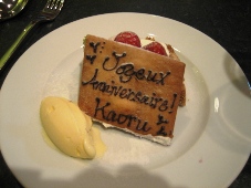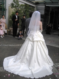 何回も結婚式出てますが、アニヴェルセルの結婚式は初めて! 楽しみでした~☆ ブーケトスの前です。ドレス、すごくかわいかった♪ (「ドレスもって言ってよ!」といわれたけど(笑) 2人とも仲良くしているので、ほんとに感慨深く、 そして、アニヴェルセルの教会がとっても素敵だった! なにより、2人の結婚がうれしくて、地元友達たちも大感激です。 世帯主は、かわいい女友達たちをたくさん見れて、 うれしかったみたい。目の保養ね。 一応、キューピットだった私たち夫婦は、スピーチもしました! ちょうどメインのお肉の辺りだったので、お肉の写真が撮れなかったんだけど、 コースはとってもおいしかった! お肉もお魚も柔らかかったし~。 シャンパンもおいしかったし~☆ あったかい雰囲気に包まれて、とっても良いお式でした。 これからも、仲良くしてね!