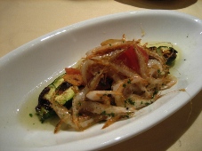 九段下辺りにいたのですが、なんか、北の丸公園付近が、 ソワソワした雰囲気だったのは気のせいかな~? 要人でも来てたのかな。 そんな雰囲気を尻目に、市ヶ谷との真ん中あたりにある「マルイチ」へ。 新鮮な野菜をたっぷり使ってます。そろそろ夏野菜のシーズンだしね~。 赤ワインとともに、おいしくいただきました。 あ、打ち合わせしてますよ、ちゃんと。お酒は入っているけども……。 メインには、スズキをサルサソースで。 ラタトゥイユが添えてあったんだけど、 プリプリな魚と合ってました。 皮までおいしく炭火で焼いてあります。 次の仕事もがんばろう~~♪