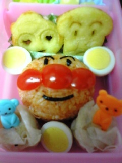 ゆっくりとお邪魔してしまって、ランチ作ってもらって(幸せ)昼からアルコールを開けて~☆ 昼下がりに今年から幼稚園に入園したお子様を迎えに行った時には、 いい気分でした♪ お子様、私がお迎えにいて喜んでくれたみたい! よかった~☆ ちょっとママ(orジジババ??)気分も味わってしまいました。 で、お弁当の話になったんだけど、 今は、どのお母さん方も、お弁当作り、ほんとうにすごいね! 今日は、初日のお弁当の写真を見せてもらって驚いた! 「こんなの普通だよ~」って言ってたけど、普通じゃないっす!! アンパンマンのホッペがいいね~って言ったら、 ぷちトマトなんだって! ツヤが最高でした♪ 今日の写真に採用でーす☆ そして、今日は、少し早いバースデープレゼントで、バスソルトをいただいてしまいました! しかも、手作りだったのです~。最近、プリザーブドフラワーとかハーブソルト、石けんなどを 習っているそうで、とっても香りがよかった!! 写真、お天気のいいときに撮影して、キレイに撮れたら紹介します!! ほんとにありがとう~! そして、今日はお邪魔しました。楽しかったね♪
