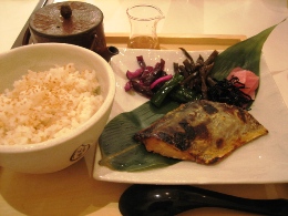 東京駅の八重洲のお店を取材してるので、そのなかから胃にやさしそうなお茶漬けをチョイス。 「創作茶漬け こめらく」というお店です。 こんな風にセットで出てきます。 さわらの西京焼きのお茶漬けです。 五穀米との組み合わせでした。 お茶はカツオ出汁で。 最初は丼にして食べて、最後にお茶漬けで。 お腹いっぱいになりました~!