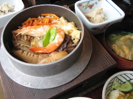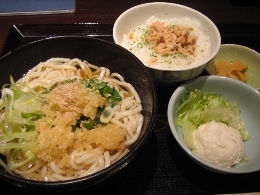 この数ヶ月、雨が多いのです。誰か、担当者に雨男か女が増えたとか?! 今日も取材だったのだけど、雨でした~。 なので、またまた傘がなくてもいける近くのお店、 「六蔵」へ行くことに。 今日は、鮭ご飯と季節のうどんのセット。 炭水化物ばんざいなんだけど、 胃が小さいせいか、ご飯残してしまいました。