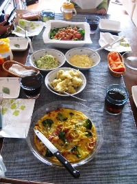 と、思ったら、春休みは終わってて、入学式から2日目。 ランドセルを背負って、我が家に「ただいま~」って帰ってきました。 かわいい~♪ 何歳までチュウしてくれるかなあ☆ お子様3人、友達2人。 いつもお疲れのママたちには、ゆっくりしてもらおうと、 今日もランチを用意しました。 好きな具材を挟んで、自分で作るサンドイッチです。 卵、ポテト、キャベツ&ピクルスの3種類。それからキッシュとサラダ。 お子様も喜んでくれたので、よかったです! また遊びに来てね~♪
