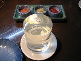 ということで、久しぶりにサシで飲みに行くことになりました。 醸造酒好きな私たち、 和食屋さんに来たので、日本酒です。 〆張鶴を久しぶりに。おいし~い! 3種の珍味盛り合わせにピッタリでした。 ……オヤジくさいか、やっぱ。