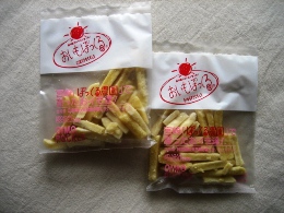 「完全に“じゃがぽっくる”のマネだよね~(笑) 味は保証できないんだけど」と、 友人は言っておりました。パッケージ&ネーミングに大爆笑!! 福岡空港に売っていたらしいです。 しかも、ぽっくる農園てとこで育ったさつまいもらしいです(爆 右の小分けになっているのが10パック入ってました♪ お味のほうは、意外にうまい!! お塩が結構まぶしてあるのだけど、しょっぱさのあとに、さつまいもの甘さが☆ 原稿を書きながら、パクパクいただいてしまったのでした~♪ ありがとね~! おいしかったよん。ビールのつまみにも最高でっす! PR