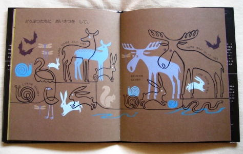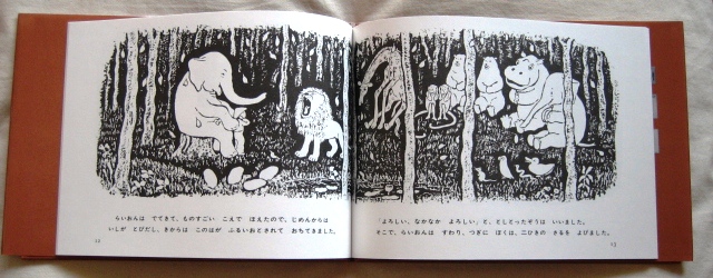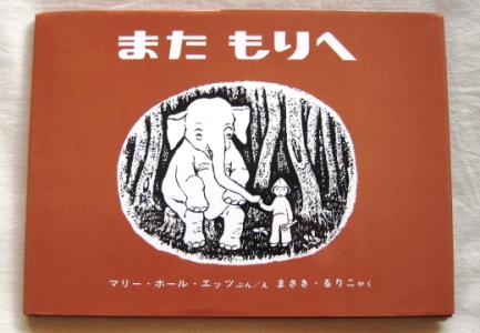 『また もりへ』 作&絵:マリー・ホール・エッツ 訳:まさきるりこ 発売元:福音館 前作で夢のようなひと時を過ごした主人公は、また森へ出発! 今度は森の長のようなゾウが出迎えてくれて、たくさんの動物が出てきます。 「大きい声を出すコンテスト」みたいのが開かれて、動物達が次々参戦! でも、勝敗は関係なく、最後には意外な決着! また夢のようなひと時です~。