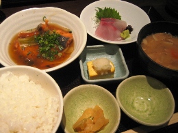 1日がかりだから、気合を入れねば! ということで、和食でがんばりました。どうつながるのか? 何度か来たことのある「六蔵」です。 久しぶりかも~。 今日は、お魚ランチで、揚げ魚のあんかけと、 はまちのお刺身。 うーん、やっぱり、お刺身でご飯食べるのは、 ちょっと苦手です。お刺身定食とかね。 酒飲みの言い訳かな??