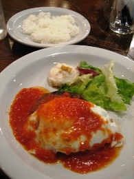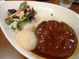 ハンズに立寄ったのだけど、見てると物欲がフツフツと……。 父の日のプレゼントだけ購入して、我慢しました。 ランチは「バーグハウス」で。 またまた公式ホームページはなかったです。 メニューに「ロコモコ丼」があったので、 頼んだんだけど……。 えーっと、これでロコモコだそうです。 野菜これだけ?? 目玉焼きじゃなくて温泉卵?? んで、このソースは、うーん、何かな? グレイビーソースとまでは言わないけどさあ。 ちょっと残念なランチでした。 スタッフ君のハンバーガーセットについてきたポテトにいたっては、 「マックのポテトを食べるの忘れて、次の日に気がついて食べたときみたいな感じです」 だったそうで……。想像するのも怖いわあ~~。