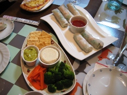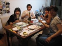 私の誕生日に野球のエキサイトシート&シャンパングラスをプレゼントしてくれた、 地元友達カップル&地元友達(♀)、世帯主、私の5人でお祝い会です☆ まだ飲んでないのに、 なぜか手振れを起こす世帯主が、 とりあえず、乾杯写真を撮りました。 ボケたので雰囲気だけでもどうぞ~。 私は料理担当なので、まずは前菜から~。 ということで、生春巻きと野菜ディップです。 ディップはアボカド&クリームマッシュルーム。 それから、奥にちょっと見えてるのが、 ナン生地ピザです。 デジカメをチェックしたら、なぜかここで写真が終わっている!! 楽しすぎて、撮るの忘れちゃったんだな……(汗 作ったものだけでもメモ程度に。 ・つくね焼き ・ズッキーニのフリット ・小海老&マヨのパイ焼き ・生ハムサラダ ・じゃがチーズ それから、お誕生日の友人は、大の寿司好き! なので、舟盛りでお寿司を注文して~。 (画像は以前のものを使用) トロがおいしかった♪ 友人が持ってきてくれた、生まれ年のワイン(激旨)をあけて、いい気分! そして、ハッピーバースデーのホールケーキ! これはすっかり写真忘れてました。 土建屋、本屋、経理、歯医者、ライターといろんな職業が集まった今日の宴。 遅くまでいろんな話で盛り上がって、世はふけていったのでした~☆ そんで、朝起きてみたら、残骸が。 この写真は一部なのです……。 モエが2本も! うちにあった安いシャンパンも! 1500mlの樽生(生ビールサーバーで飲んだ!)、 ギネスは限定を4本。 そして、赤ワイン2本。 5人で飲んだから、楽しく翌日にも残らず、とーっても楽しい大宴会でした! みんなまた遊びにおいでね~♪