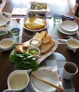 2回目の今日は、我が家で開催されました~! メンバーは、いつもの3人です。お子ちゃま&misaponちゃんは初我が家! ランチを用意しました。 この間、みんなにディップが好評だったので、 調子に乗ってまたアボカドディップとクリームチーズディップを。 ランチなので、バケットとサラダ菜でいただきました。 それと、チキンライスドリア、パスタサラダ、 ブロッコリーとジャガイモのチャウダー。 今日は暑くて、汗をかきかき料理したから、ちょっと全体的に味付けが濃くなっちゃいました。 でも、汗をかいてたからか、このときは濃くは感じなかったんだけどね~。 みんなにおいしいといってもらえるのは、やっぱり幸せ♪ そしてついに! 3ヵ月越しでmisaponちゃんに教えてもらっていた、 ハワイアンキルトが完成しました! 超初心者な私なので、簡単な鍋敷きです。 misapon先生の教えのおかげで、 キレイに完成しました~~!! キルト、はまるかも。 ま、家庭科のお裁縫部門の成績のことは聞かないでね。 お子ちゃまは、ずーっと機嫌よく、みんなでキャッキャと遊び、 久しぶりなので、いっぱい話し、あっという間に夜になり……。 楽しい時間はすぐに過ぎ去ってしまうのねえ。 今日はありがとうね~! また来月もよろしくね!!