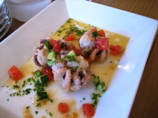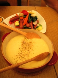 お店にお邪魔してきました~♪ 場所は関内です。カジュアルフレンチ。 コースじゃなくてアラカルトで。ビールとスパークリングワインをグビグビと。 右のイイダコは、すごい歯ごたえで、一口で食べてしまった私は数分間沈黙……。 でも、弾力よくっておいしかったです。 お店のウリである「アリゴ」っていうのをいただく。 チーズフォンデュみたいなんだけど、ジャガイモが入ってて、 冷めるとまた違った味が楽しめる感じでした。 いろんな野菜につけて、ぱっくり。 この頃には、ワイン何本目?? 仕事だった世帯主は遅れてきたのだけど、さらに電車も遅れてて、 結局1時間ちょっとしかいれなかったのかな。でも、私は5時間くらい楽しんだので、 今月も楽しい食事会でした~☆