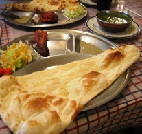 ♪ナンが食べたい、ナーンがたーべたーいな~♪ なんだかよくわからないけど、とりあえず、ナンが食べたいのね。 ということで、ランチにインドカレーを食べに行くことに。 うちの近所にあるインドカレーのお店です。 私はほうれん草とチーズのカレーに。 辛さはやや辛めで頼んだのだけど、結構からーい! でも、おいしーい! で、全部いただきました。 とりあえず、ナンを主役に撮ってみた。 このでかいナンを、世帯主はおかわりしてました。 タンドリーチキンも食べて、ご満悦な世帯主でした。私も満足満足☆