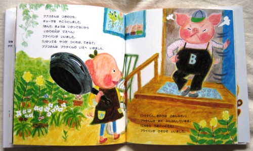 『いかりのギョーザ』 作:苅田澄子 絵:大島妙子 発売元:佼成出版社 豚のブブコさんが、怒りパワーで餃子を焼いてくれるフライパンを拾います。 このフライパンが、なぜか関西弁! そして、すごーくおいしそうな餃子が出来上がります。 ブブコさんの怒りのパワーがフライパンに移って餃子ができたわけなんだけど、 次の日から村中の怒っている人に餃子を焼いてもらうことに。 そうやって、村中の人の怒りが消えたとき、フライパンに異変が! 結末は、なかなか爽快です。 親しみやすい絵とテンポのいい文とフライパンの関西弁が絶妙です。
