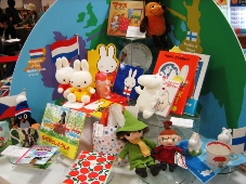 「映画みたいね」という意見が一致。ほかには? で世帯主が「マッサージ」、 私は「絵本展」行きたいということで、映画を中心にいろいろ動くことになりました。 今日は『ブラッド・ダイヤモンド』を。大人になったね、ディカプリオ。 絵本展は、銀座三越で「世界の絵本フェスティバル」っていうのをやってたので、 観にいったのだけど……。一言でいうと、期待はずれもはなはだしかったです。 グッズ中心の販売が主で、塗り絵コーナーがちょろっとあって。 人気絵本のキャラクター達と写真が撮れるというパネルのある、小さいブース。 ……まあ、デパートだから商売色が強くなっちゃうのはしょうがないのかな。入場無料だしね。 現に、グッズばっかり購入している人が大行列を作っておりました。 パネルはこんな感じで……。 「おさるのジョージ」 「マドレーヌ」 「バーバパパ」 「うさこちゃん」 のパネルと一緒に写真らしい。 もちろん一緒には撮らないけど。 地球儀のように丸く展示してあるコーナーがあって、 国別の作品とグッズが並んでます。 残念だったのは、私の好きな荒井良二のサイン会に間に合わなかったこと。 いつかサインしてもらいたいなあ。 あ、世帯主の感想は「ミッフィーの作者って、こんなオッサンなんだね」だそうで。 偉大なるディック・ブルーナに、そんなあ。