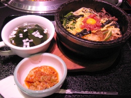 今月はものすごーく勝っているらしく、今日のランチも「叙々苑」に連れて行ってくれました。 どうやら、1ヶ月のお給料よりも儲けたらしい。すごいわあ。 ランチセットを頼んだのだけど、 スタッフ君のたっての希望で、 「ハーツ」も頼みました。 ハツのことみたいですね。 心臓とハートをかけてる?? それとも、ハーツともいうのかな? 今日はなんとなくビビンバの気分だったので、 石焼ビビンバにしました。 さすが、素材1個1個がおいしくて、 石の熱さも良くて、 とってもおいしい石焼ビビンバでした。 それにしても、店内がムーディーなのよぉ。心なしか薄くピンクのライトだし、 水はさらさらと流れてるし、夜の雰囲気だったなあ。 周りには若い子もいたけど、ランチ懐石(8000円!!)を頼んでいるオジサマたちが圧倒的。 まだまだ、そこまではいけません。小市民なもので~。