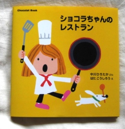 『ショコラちゃんのレストラン』 作:中川ひろたか 絵:はた こうしろう 発売元:講談社 子供のやりたいこと、興味のあることを、絵本の中でどんどん実現させるっていうのをテーマに、 現在7シリーズが発売されています。私はこの1冊しか持ってないんですけどね。 お店屋さんごっこをはじめる3歳くらいから、内容も楽しめるのではないかな。 お料理が得意なショコラちゃん、いろんなメニューを作りすぎて、最後にはレストランをオープン。 ほんと、夢のような世界だなあ。 いっぱいメニューが出てきますが、ホットケーキがいちばんおいしそうだった! 食べたくなっちゃうな~~~♪