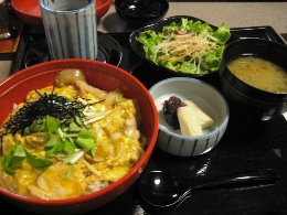 なんとなく、カツ丼とか牛丼とかに目が行ってしまう。 でも、今日はランチメニューがおいしそうだったので注文してみました。 新宿取材だったので、スタッフちゃんの希望で近くの和食屋「日本料理車屋」へ。 夜はどうかわからないけど、ランチは本格和食が手軽に食べられます。 といっても、ワンコインというわけには行かないけどね……。 肝心の親子丼は、たまごの具合がやや硬めで私好みでした。 あんまり半熟は苦手なのです。 |
