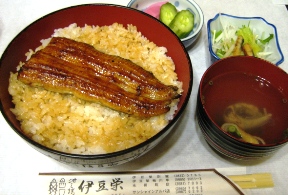 今日は上野へ~。ふうう。ずっと出ずっぱりになってるので、力の湧くものを! ということで、お昼はウナギを食べに行きました。 入ったのは「伊豆栄」です。支店もいろいろあるみたいだね。 ランチなので、1000円以内でいただけるのがうれしいところ。 ウナギが2段になっております。まあ、本来上に乗せるところを、 間に1枚挟んだというだけですが。 肝吸いもついて、お漬物もいいお味でした。全席禁煙ならなおよかったけどな~。
