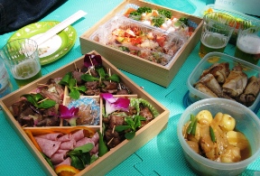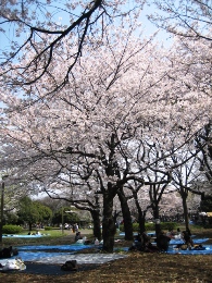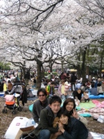 なんと、桜のシーズンじゃないですか。ということで、お花見へ! パンマイスターが3月末がお誕生日なので、合わせてお祝いしてきました。 会場は「代々木公園」にする。 場所取り担当の私たちとラブリー(世帯主公認)、 10:00から張り切ってシートを広げます。 まだ人影もまばらだね。 お誕生日だというのに、パンマイスター&旦那様にお花見弁当をお願いしてしまいました。 そして! この豪華なお花見弁当~☆ オードブルに、お肉に野菜にちらし寿司!! もちろん、味のほうは言わずもがなでございます。 ラブリー(世帯主公認)はお酒係で、いつものようにおいしいシャンパンとワインを。 こちらも青空の下で昼間から、とっても美味でした♪ 私はこのチョコバナナケーキを作りました。 近くにはテオブロマもあるし、 ケーキ買おうかなとも思ったのだけど、 せっかくなので、手作りで……。 ガーナミルクチョコレート使ってます(笑 久しぶりに小さく写真を載せてみます。(←酔っ払い数名) 帰る間際には、たーくさんの人たちでごった返してました。 でも、桜吹雪きれいだった~。 一部葉桜にもなってたけど、無事、晴れ女パワーも発揮して、 楽しい1日になりました♪ 来月もおいしく楽しく過ごそうね!!