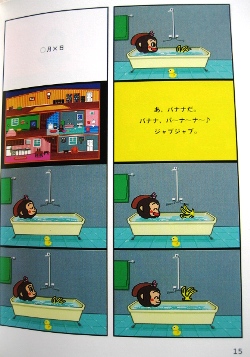 すごく早朝にやってたので、眠い目をこすって見てた覚えがあります。 で、そういえば、絵本を持っていたなあと思って、ゴソゴソと探してきました。 『てんざるくんの人生』 企画:小出裕一 画:青木俊直 発売元:フジテレビ出版 「ウゴウゴ・ルーガ」の中から、人気キャラがたくさん登場したんだけど(ミカンせいじんとか)、 そのキャラたちの人生を綴った絵本で、全部で7冊出ました。 てんざるっていう名前は、頭にエビのてんぷらを載せてて……。 天むすから来てるんだと思われます。 てんざるくんの人生は、常にバナナとともに。 毎日いろんなところに出かけてるんだけど、 必ずバナナに絡みます。 この日は回転寿司でバナナと出会い……。 またある日にはなぜかお風呂でバナナと出会い……。 そうやって、たくさんのバナナと出会って、 最後には死ぬんですけどね。 その死に方があっけなすぎ。 てんざるくんの人生はずっとバナナと一緒で楽しかったんだろう。 ちなみに、余談ですが、この本は当時付き合っていた人に買ってもらいました。 本屋ですごく迷っていたら、ひょいっと買ってくれたんです。いい人だったなあ。 で、私はお返しに、同じシリーズの「あにきの人生」っていうのを後日あげました。 思い出したら、あにきの方も読みたくなってきたー!