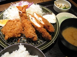 たまにすごーく食べたくなります。 で、ゲンカツでちょっとフラストレーションがたまってたみたいで、 今日はランチに何しようと探してて、思わず「和幸」に目が。 スタッフ君に有無を言わせず「とんかつ食べたーい!」と提案したのでした。 ランチセットは結構お得で、一口ヒレカツとエビフライ、大葉サンドの3種類で1050円。 キャベツもごはんもお味噌汁もおかわり自由です。 まあ、私はキャベツしかおかわりしないけど。 すごく美味! ってわけではないけど、満足満足!
